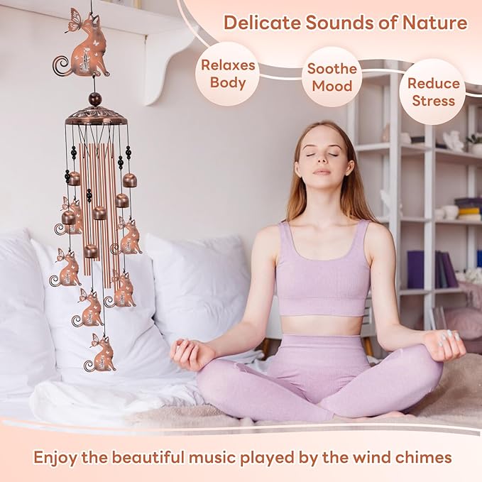 • Sweet Melodies: Enjoy the soothing sounds produced by this cat wind chime as it dances in the wind, creating a relaxing and peaceful ambiance wherever it is hung.