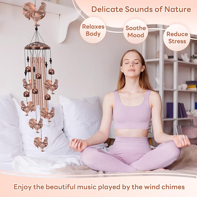 • Cheerful Melodies: Listen to the delightful melodies created by this chicken wind chimes as it sways in the breeze, bringing a sense of joy and whimsy to your surroundings. The pleasant and crisp wind chime will relax your mind and body.