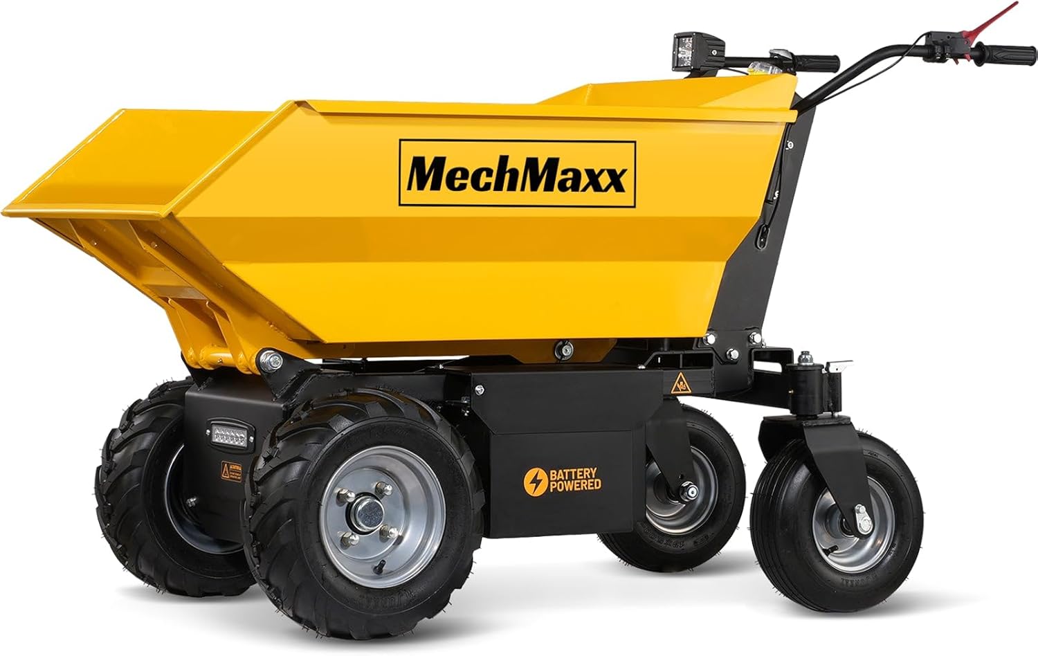 1100Lb Loading 48V Battery Powered Wheel Barrow Electric Dumper Cart with 30W Light, Hydraulic Tipping, 1000W Brushless DC Motor, LED Display Screen, Model EH50 Yellow