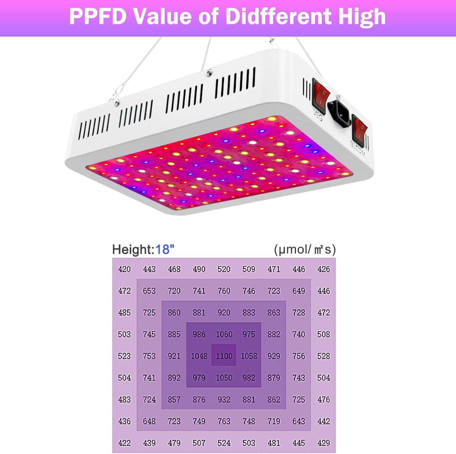 • Veg & Bloom Switch: Through a wide plant growth testing, the Veg and Bloom switch, which designed to provide proper light for plants in different growth stages to greatly increase your harvest. Veg switch is the blue LED and white LED designed for seed or seedling growth; Bloom switch is the red LED and white LED designed for flowering/blooming; Both Veg and Bloom switches can for maximum per formance to plants.