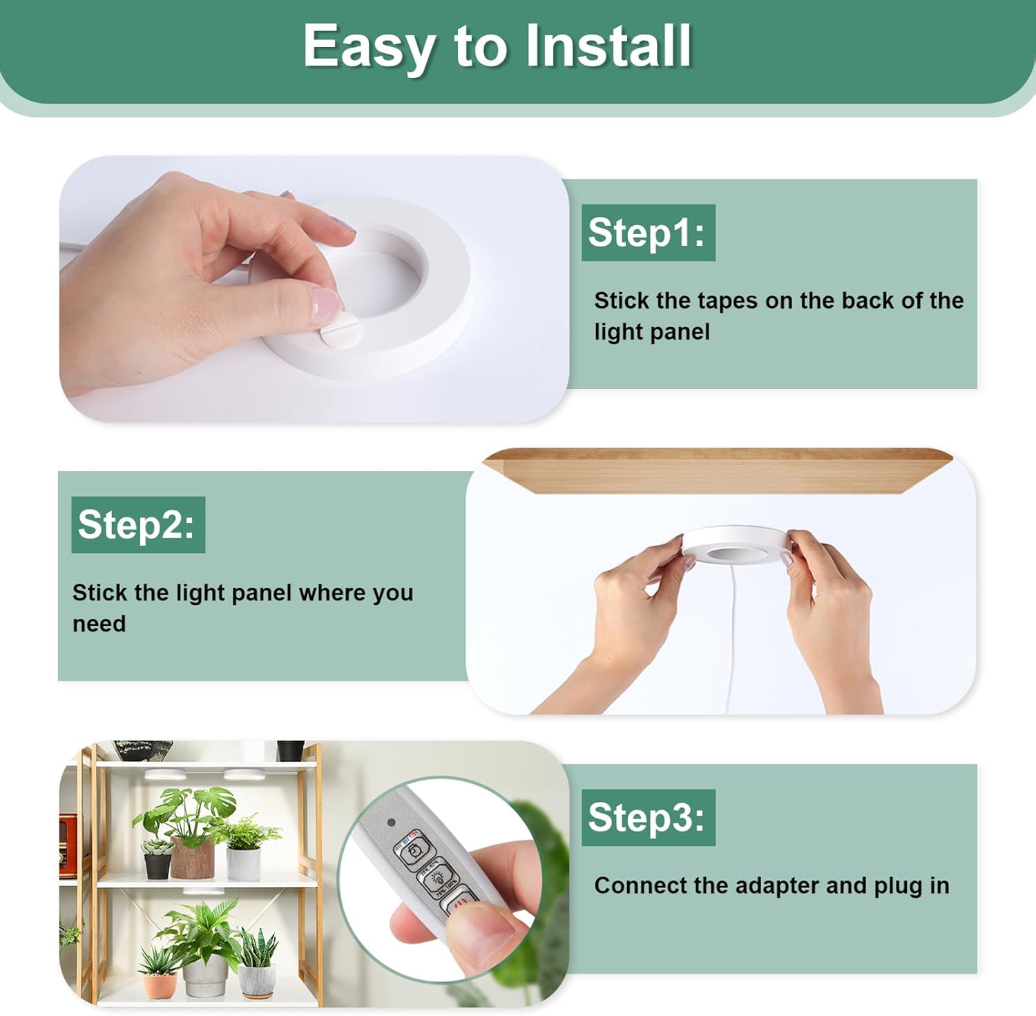 • Space-saving and Versatile Design: With a compact circular shape measuring 3.54 inches in diameter and 0.55 inches in thickness, our Halo Grow Light is particularly suitable for small potted plants such as succulents, cacti, and so on. It can be easily mounted anywhere using the included double-sided tapes, making it perfect for providing light to plants in confined spaces like cupboards. Its sleek design adds a decorative touch to any indoor space.