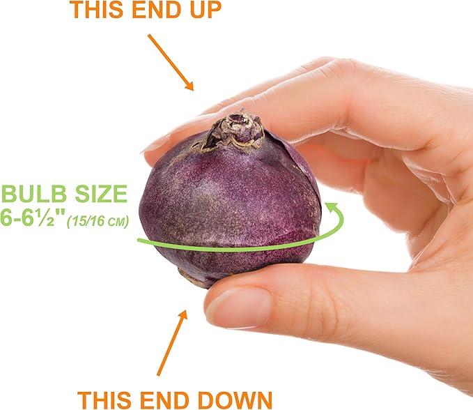 • Product Care Instructions : Plant hyacinth bulbs in the fall when the ground cools and before the first hard frost. Outside temperature should be about 65 degrees Fahrenheit or cooler. Wear gloves when planting. Select a well-drained location that receives full sun to partial shade. Dig a hole 6-8" deep in loosened soil and place bulbs in the hole. Bulbs should be spaced about 4-6” apart. Plant them in the ground with their pointy ends up. Cover with soil and water well so the soil above the bulb settles. Plant hyacinth bulbs in the fall when the ground cools and before the first hard frost. Outside temperature should be about 65 degrees Fahrenheit or cooler. Wear gloves when… See more