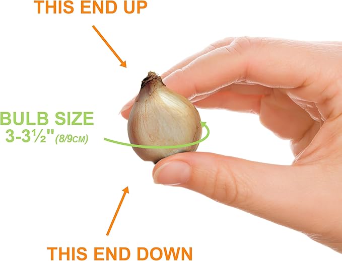 • Product Care Instructions : Plant bulbs in the fall when the ground cools and before the first hard frost. Outside temperature should be about 65? or cooler. Select a well-drained location that receives full sun to partial shade. Dig a hole 3-4" deep in loosened soil and place bulbs in the hole. Bulbs should be spaced about 1-2" apart. Plant them in the ground with their pointy ends up. Cover with soil and water well so the soil above the bulb settle Plant bulbs in the fall when the ground cools and before the first hard frost. Outside temperature should be about 65? or coole… See more