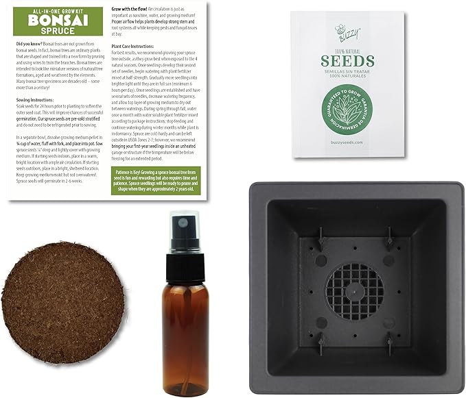 BUZZY Seeds Bonsai Starter Kit, Norway Spruce, Complete Indoor Gardening Gift, DIY Mini Tree Project, Soothing Indoor Hobby for Home or Office, Fun Stocking Stuffer, Housewarming Present