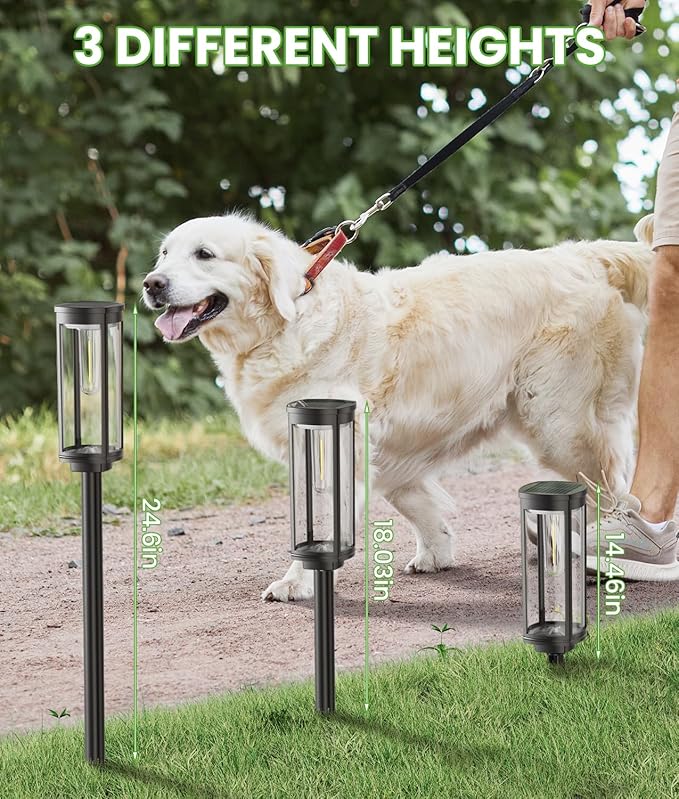• UNIQUE & RETRO DESIGN: The bright solar pathway lights outdoor feature warm white tungsten filament bulbs placed within high transparency, thicker lampshades, making BITPOTT solar yard lights brighter and more durable than others. These waterproof solar powered landscape lights can project unique light and shadow, creating a romantic and warm atmosphere for your home.