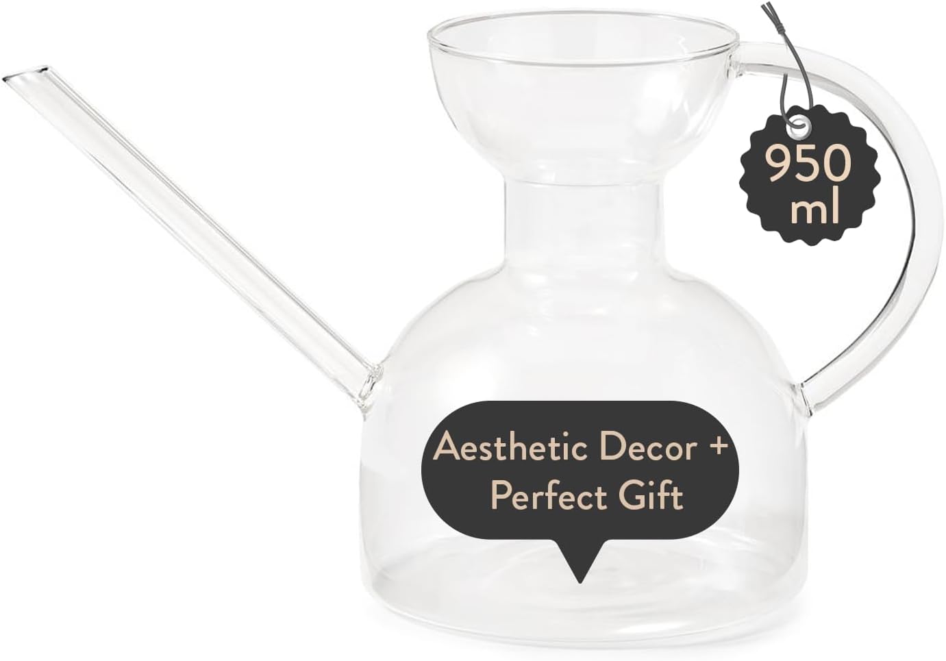 • Elegant Indoor Plant Care: This compact glass watering can holds up to 32 oz of water and is ideal for daily indoor plant care; Lightweight, easy to grip, and handcrafted with a touch of luxury, it's perfectly sized for small pots, planters, and tight corners; Ideal for herbs, succulents, bonsai, and decorative greens; A reliable small watering can for indoor plants that fits seamlessly into modern homes or desk gardens