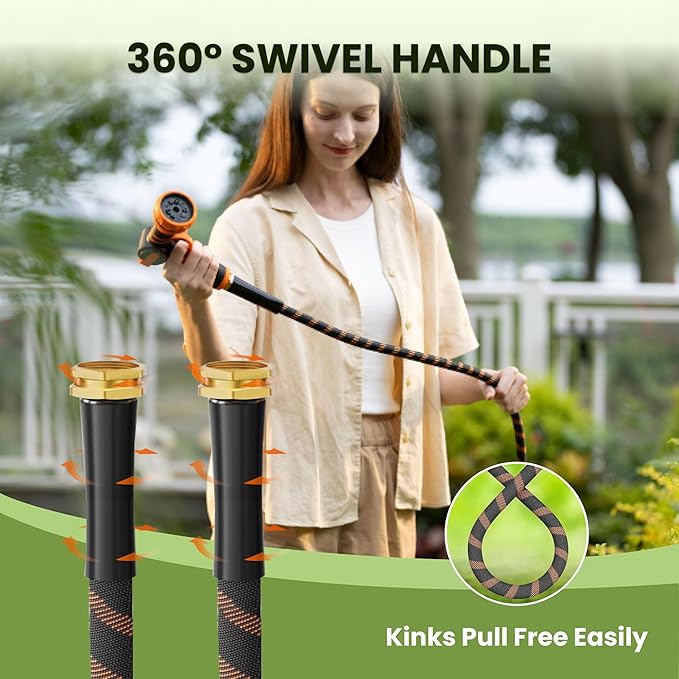 • Aluminum Connector: The garden hose is equipped with Hexagonal 3/4-inch American connector and rubber gasket design to prevent leakage, has excellent corrosion resistance and does not rust.
