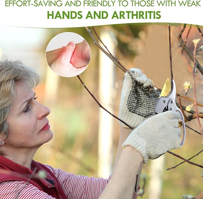 • โค๏ธโ€๐Ÿ”ฅEASY TO OPERATE AND EFFECTIVE LOCKING: The scissors are reliable and easy to use. They feel comfortable and durable, suitable for a variety of cutting tasks; Excellent ability to handle difficult tasks such as cutting grass, trimming overgrowth and cutting large diameter branches.