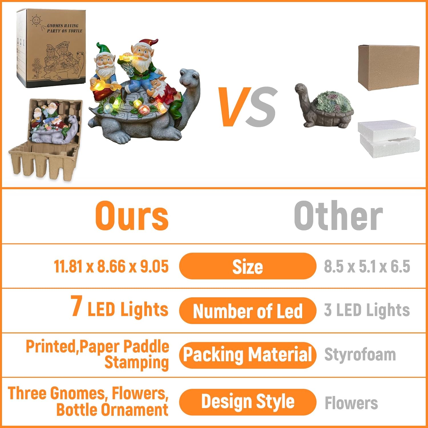 Upgraded Size Solar Garden Outdoor Statues Three Gnomes having party on turtle with 7 LED Solar Figurine for Lawn,Patio,Balcony,Yard Decor Unique Housewarming Gift, for grandfather, Father,Grandma,Wen