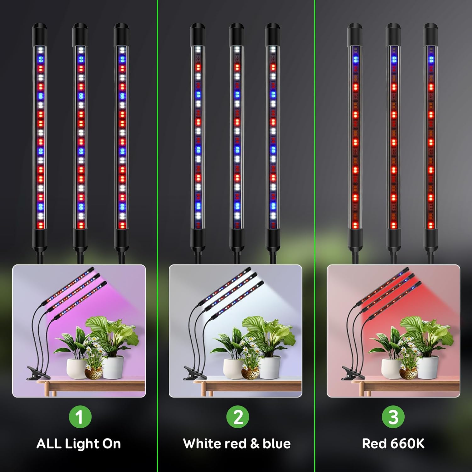 - ใ๐ฑ-๐๐ฒ๐๐ฒ๐น ๐๐ถ๐บ๐บ๐ถ๐ป๐ด & ๐ฏ ๐๐ถ๐ด๐ต๐ ๐ฆ๐ฝ๐ฒ๐ฐ๐๐ฟ๐๐บ ๐ ๐ผ๐ฑ๐ฒ๐ ๐ณ๐ผ๐ฟ ๐๐๐๐๐ผ๐บ๐ถ๐๐ฎ๐ฏ๐น๐ฒ ๐๐ฟ๐ผ๐๐๐ตใ Customize your plantโs lighting with 5 adjustable brightness levels and 3 spectrum modes: 6000K cool light, 460nm royal blue combined with 660nm deep red, and full spectrum all on. This flexibility allows you to select the ideal light setting for every growth phase, making this plant grow light versatile and tailored to different plant needs, from germination to fruiting.