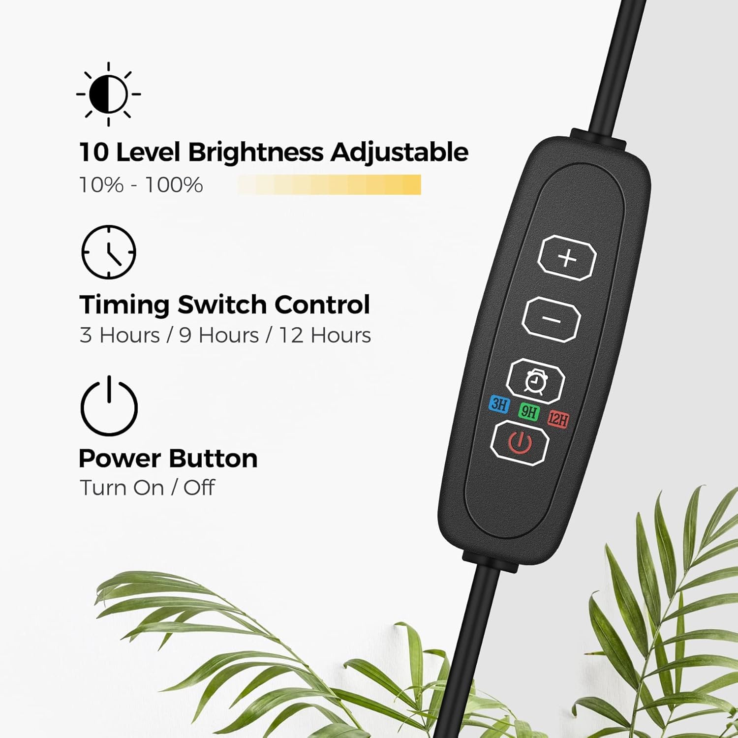 • Auto CycleTimer & 10 Dimmable Levels: The timer that can automatically cycle on/off every day after setting the 3/ 9/ 12 hour timer. You don't have to worry when you go out and travel! Safer and more flexible to use anywhere with the grow light. The Plant grow light supports 10 dimmable levels, to adjust the brightness according to different plant growth cycles