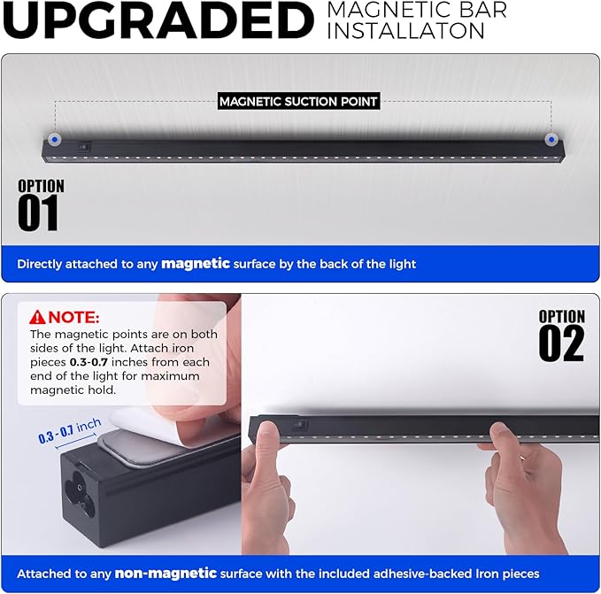 • 4-in-1 Installation:This indoor grow lights with magnetic desigh, which can be directly adsorbed to the metal surface.As well as light light clips, ties, magnetic bars with double-sided tape. Maximize your growing time with minimal setup effort