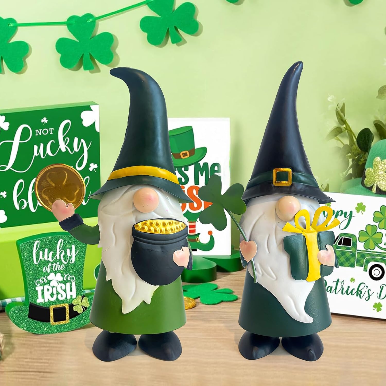 HONGLAND St. Patricks Day Decorations Outdoor Green Gnomes, Metal Gnomes Figurine Irish Leprechaun St Patricks Day Decor, Luck Shamrock Gnome for Home Outside Garden Lawn Party Yard Patio (14 INCH)