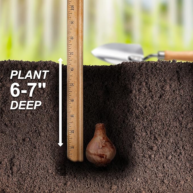 • Product Care Instructions : Plant daffodil bulbs in the fall when the ground cools and before the first hard frost. Outside temperature should be about 65 degrees Fahrenheit or cooler. Select a well-drained location that receives full sun to partial shade. Dig a hole 6-7" deep in loosened soil and place bulbs in the hole. Bulbs should be spaced about 4-6” apart. Plant them in the ground with their pointy ends up. Cover with soil and water well so the soil above the bulb settles. Plant daffodil bulbs in the fall when the ground cools and before the first hard frost. Outside temperature should be about 65 degrees Fahrenheit or cooler. Select a well-drain… See more