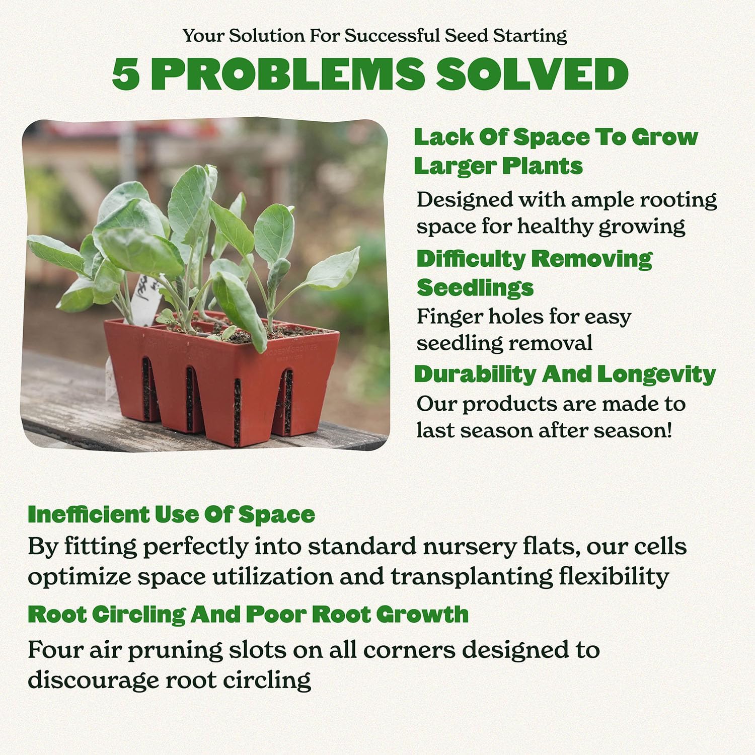 • Simple Design, Big Results: Epic grow trays for seedlings are the gardener's dream come true. They're strong, promote healthy growth, make transplanting a breeze, and keep your seedlings organized. Get ready for a thriving garden season – all thanks to the power of Epic!