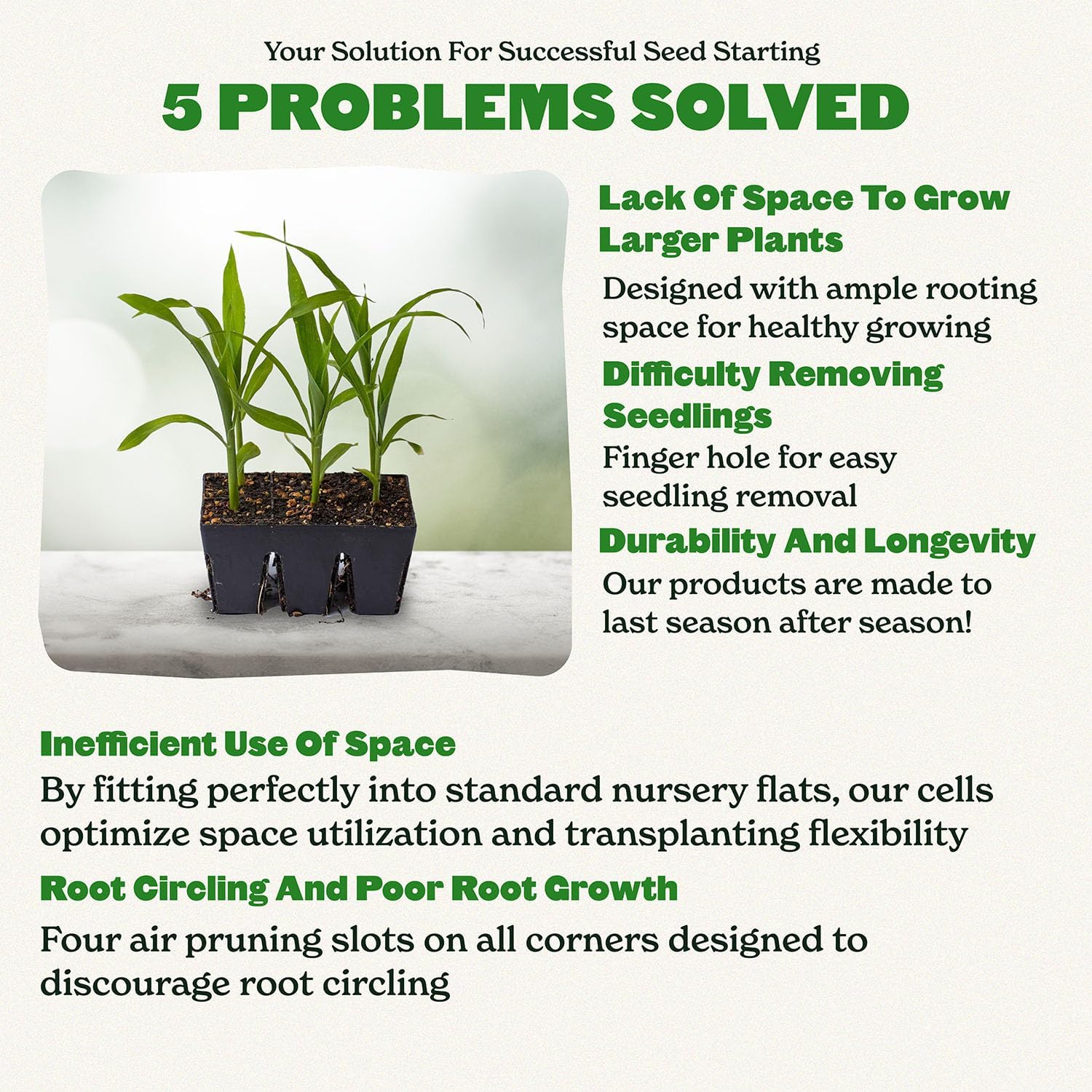 • Unbreakable Durability, Lifetime Use: Ditch flimsy trays! Our 6-cell trays (6-pack), made from recycled UV-resistant plastic, are strong, reusable, and long-lasting. Each cell measures L 1 9/16" x W 1 9/16" x H 2 1/4" for optimal seed growth.