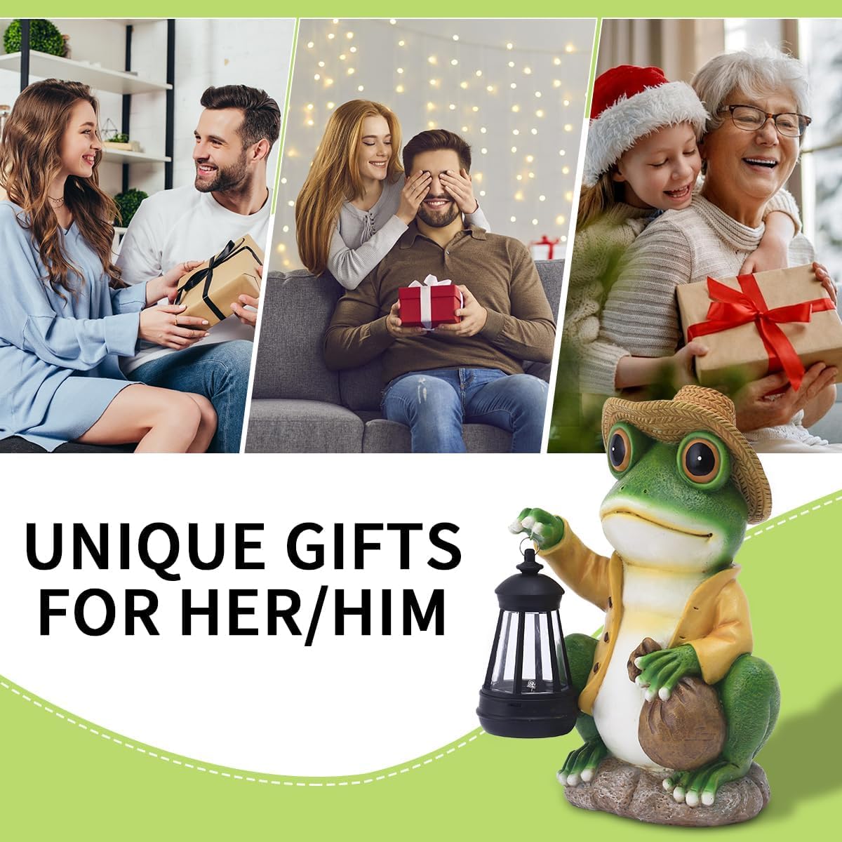 Solar Garden Outdoor Frog Statue 10 inches Tall - with Handheld Lanterns - Detachable - Patio, Balcony, Shelf, Tabletop, Lawn Decoration - Unique Housewarming, Birthday, Thanksgiving, Mom Gifts
