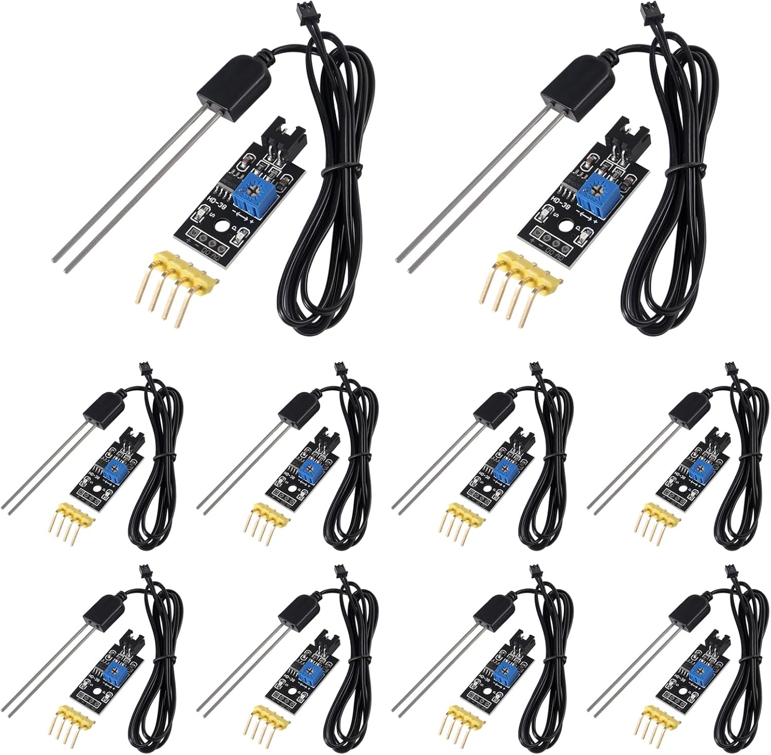 Soil Moisture Sensor, Icstation Humidity Detector, with Corrosion Resistant Probe, Digital Analog Signal Output for Arduino Raspberry Pi Garden Automatic Watering System (10Sets)