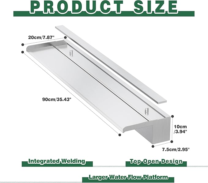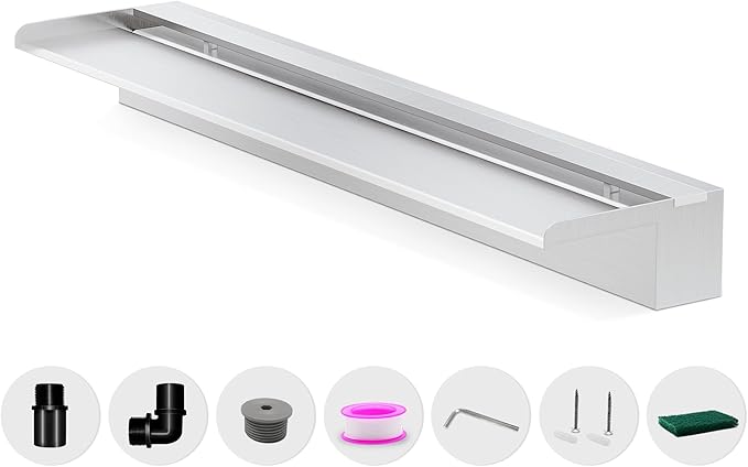 - 【Anti-Rust Spillway Waterfall】- The main body of this stainless steel spillway waterfall is welded together using 304 stainless steel for stable long-term use, featuring an top open lip design that creates elegant, invigorating, freefalling water effects to add a decorative touch to ponds and pools, letting you enjoy the relaxing sounds of water for a sense of calm and well-being. LED light strips not included, but available separately.
