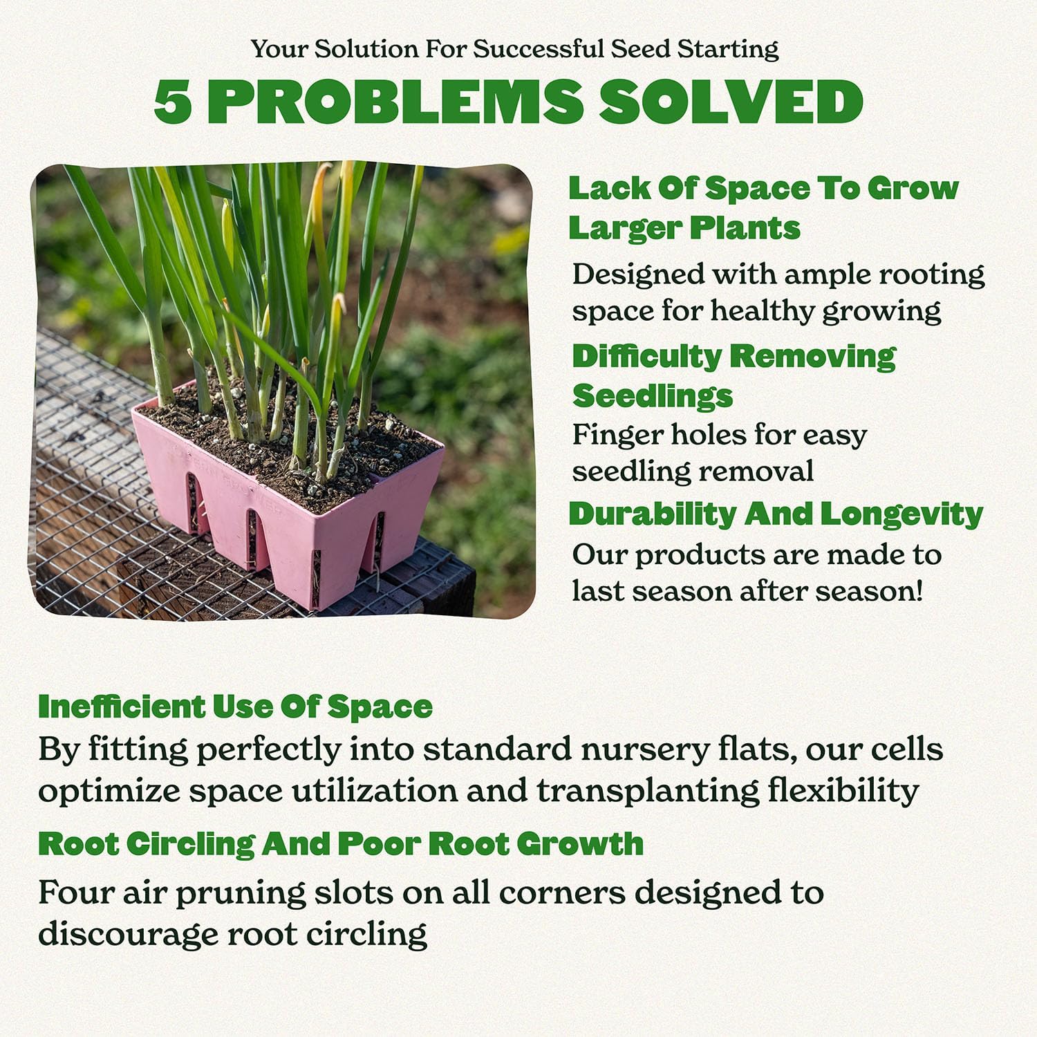 • Unbreakable & Eco-Friendly – 100% Recycled Plastic: Made from 100% recycled, UV-resistant plastic, our 6-cell trays (24-pack) are built for lifetime use. Each cell measures L 1 9/16" x W 1 9/16" x H 2 1/4", ensuring strong, reusable, and sustainable seed-starting.