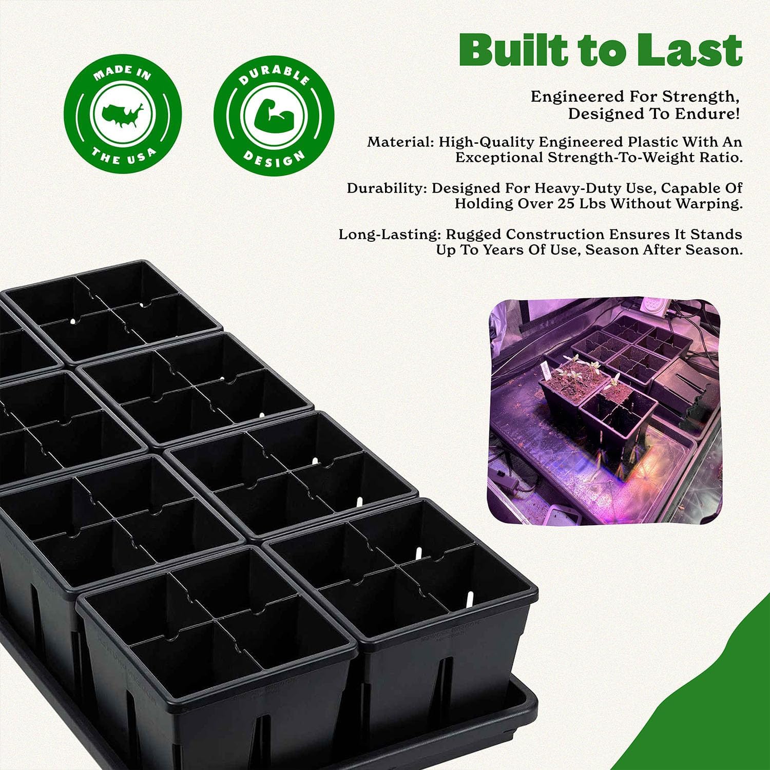 • High Capacity & Versatility: Our tray can hold twelve Epic 6-Cell Trays or eight Epic 4-Cell Trays, as well as eight 1-gallon or eight 5-inch pots, making it versatile for various planting setups and ideal for both small and large-scale gardening projects.