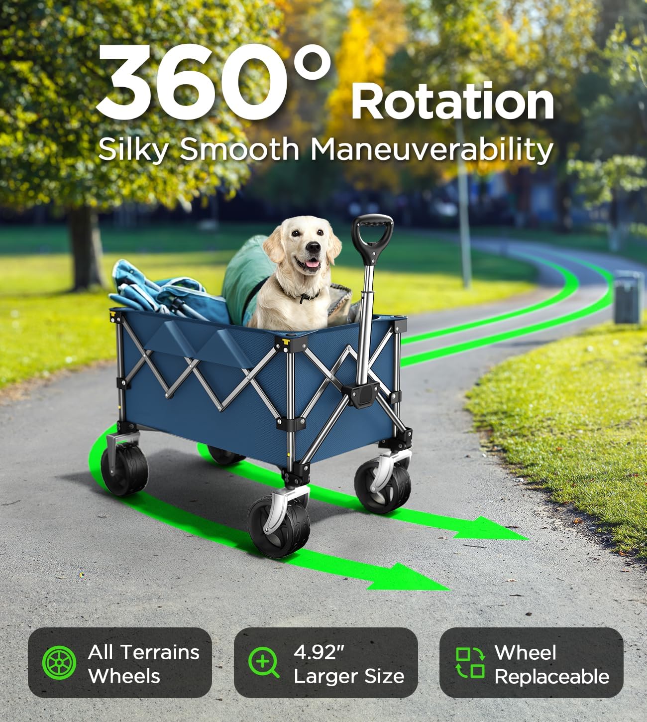 • Compact & Collapsible Design: This wagon easily folds down and is lightweight, making it simple to store in your car trunk, garage, or closet, and convenient to carry, conserving space efficiently