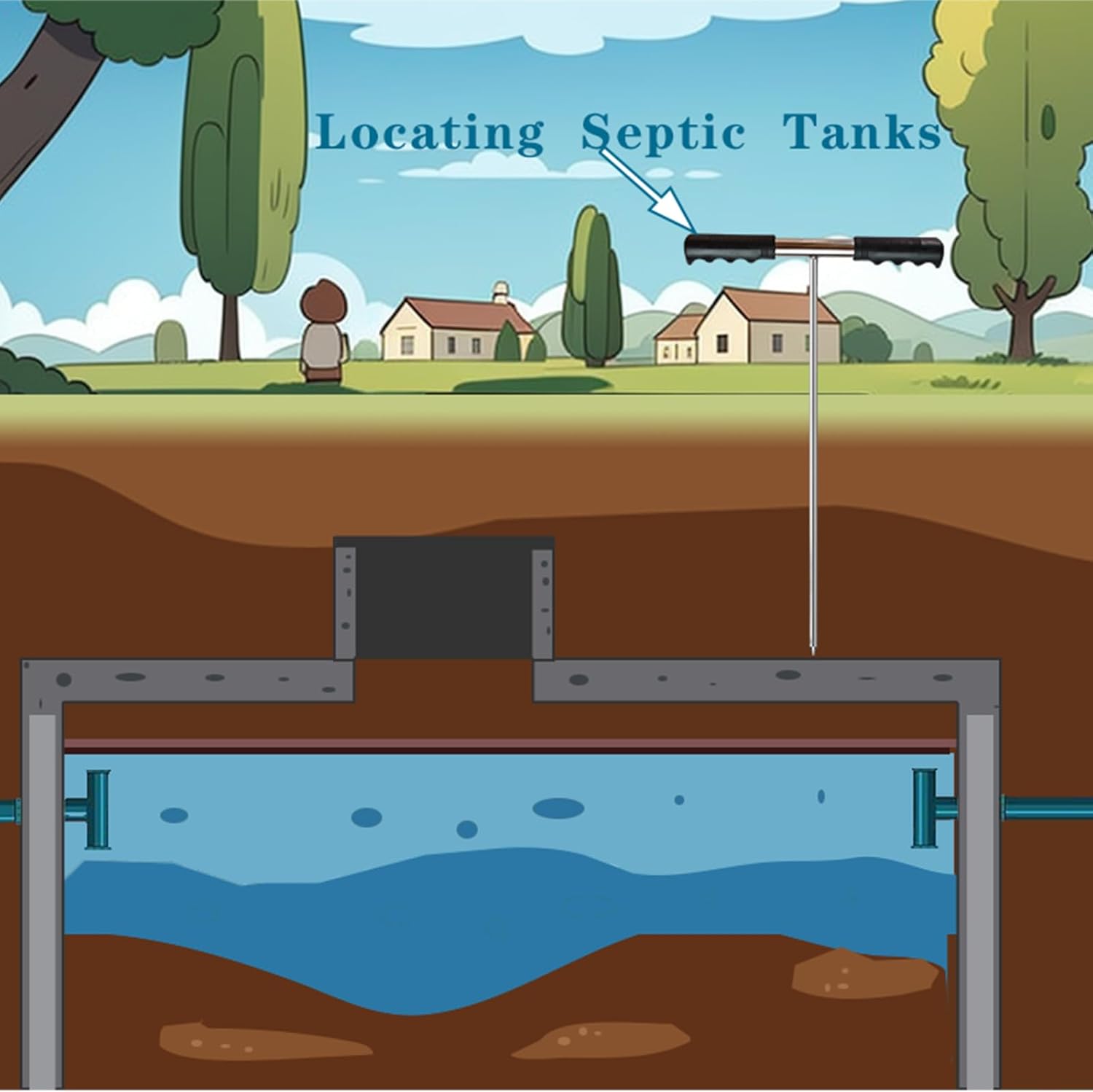 Soil Probe Rod for Septic Tank - 32-48 Inch Adjustable Grounding Tool,Stainless Steel with T-Handle Pipe Probe,for Locating Septic Tanks, Underground Pipes, Water Lines, and Gopher Runs (Portability)