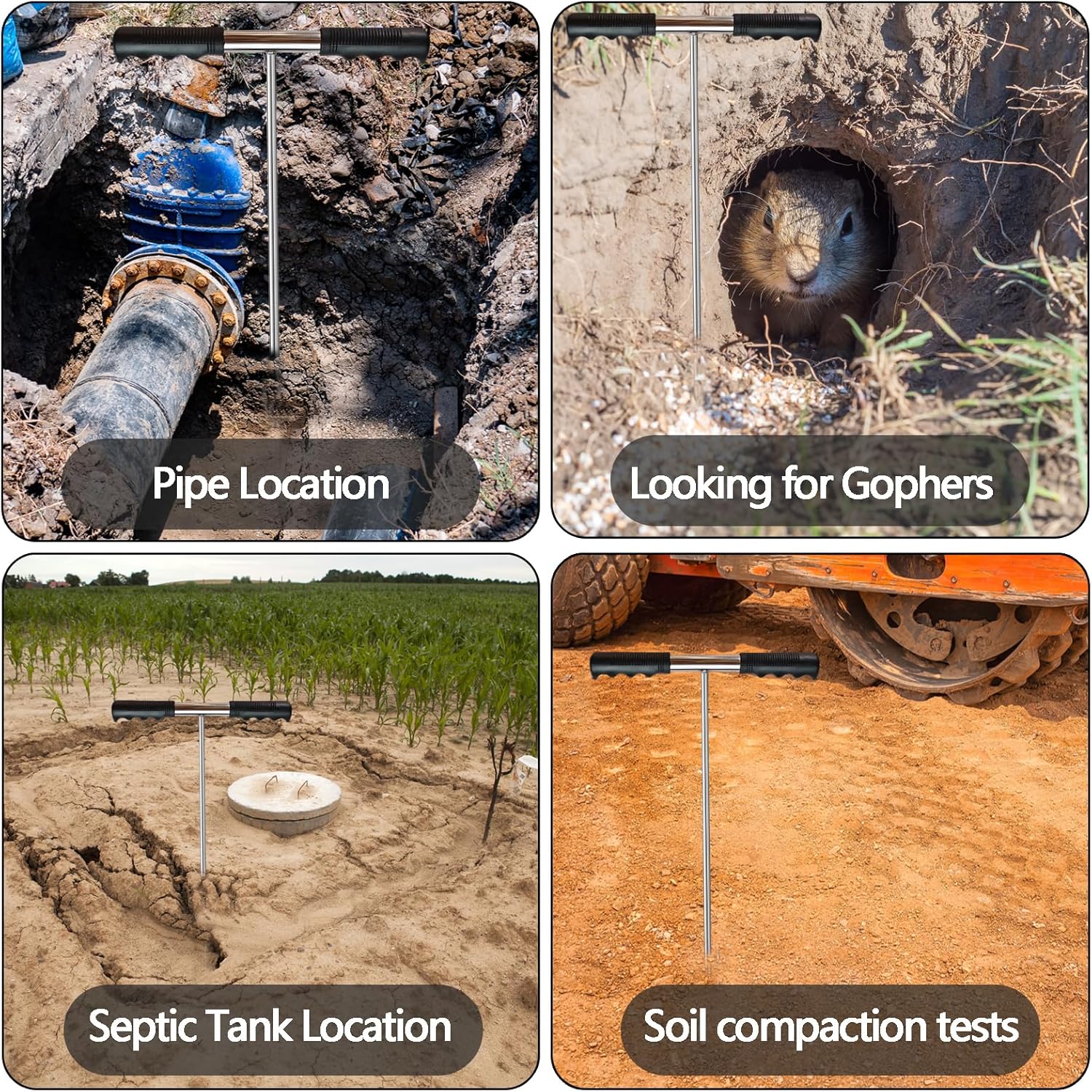 • Versatile Use: This 48-inch stainless steel soil probe rod serves multiple purposes, including locating septic tanks, pipes, underground pipes, treasure hunting, gardening, and landscaping projects, catering to various needs.