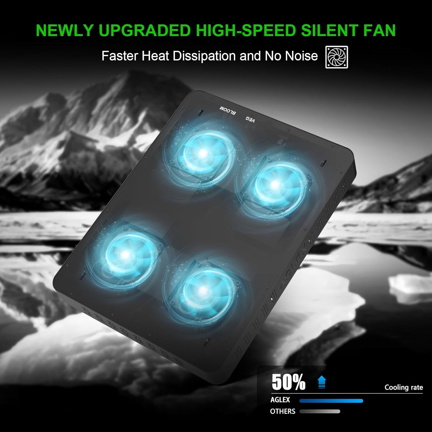AGLEX E4000 LED Grow Light, Full Spectrum Grow Light with UV IR Diode, Grow Light for Indoor Plants with Daisy Chain & Built-In Silent Fan, Plant Growing Lamps for 3x4 FT Coverage, Veg Bloom Daul Mode