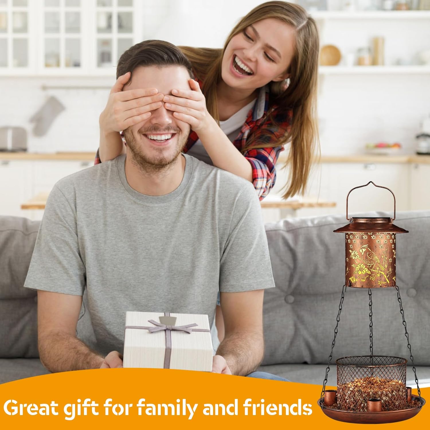 Cardinal Bird Feeder for Outdoor Gifts for Women Mom Grandma Hanging Metal Wild Birdfeeder Garden Solar Lantern Decor Lanterns Outside for Yard Patio Lawn Pathway Landscape
