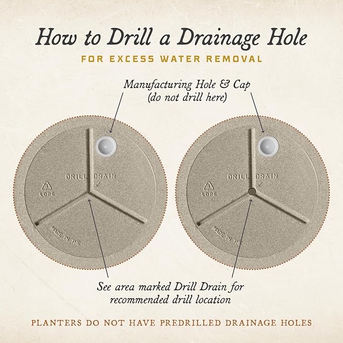 • Plant It All - The Santorini Bowl large outdoor planters provide ample space for diverse greenery, vibrant flowers, and abundant succulents to flourish. Dimensions: 26"x26"x9". Capacity: 36 Quarts. Includes drillable drainage holes.