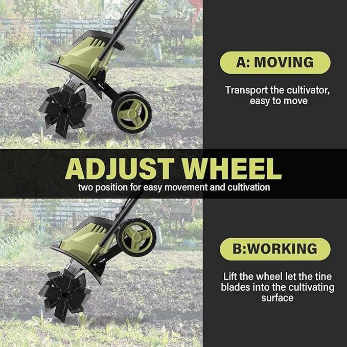 • Electric Power Convenience - Forget battery worries with this plug-in electric garden tiller; simply connect to power and start tilling without concerns of running out of charge, making gardening tasks smooth and hassle-free.