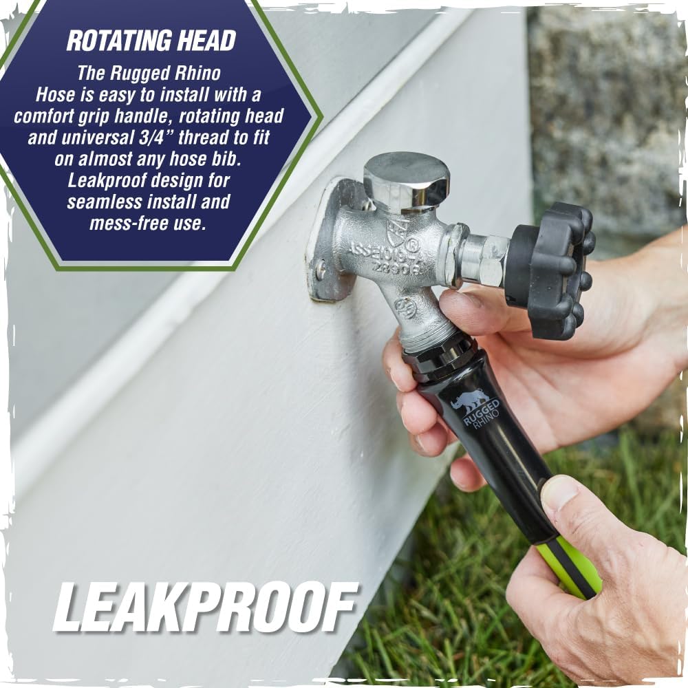 • LEAKPROOF: no need to worry about leaks and mess; hose features leak free rotating head and universal 3/4 GHT Garden Hose Thread fitment for easy install that grips tightly to almost any hose bib