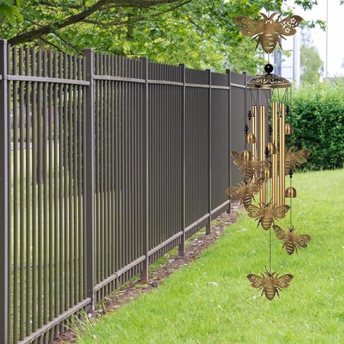 - Home&Garden Decor: Bees wind catcher is a quality ornament for home, courtyard, balcony, houses, garden, patio, sunroom, lawn, trees, porch, backyard, suitable for both indoor and outdoor use. The memorial wind chimes represents longing for the future as well as the good wishes. Hang the bees bells in garden,when it flows with wind,soft sound will around you, feel peace and happy. At the same time, it can effectively commemorate special people or important memories.