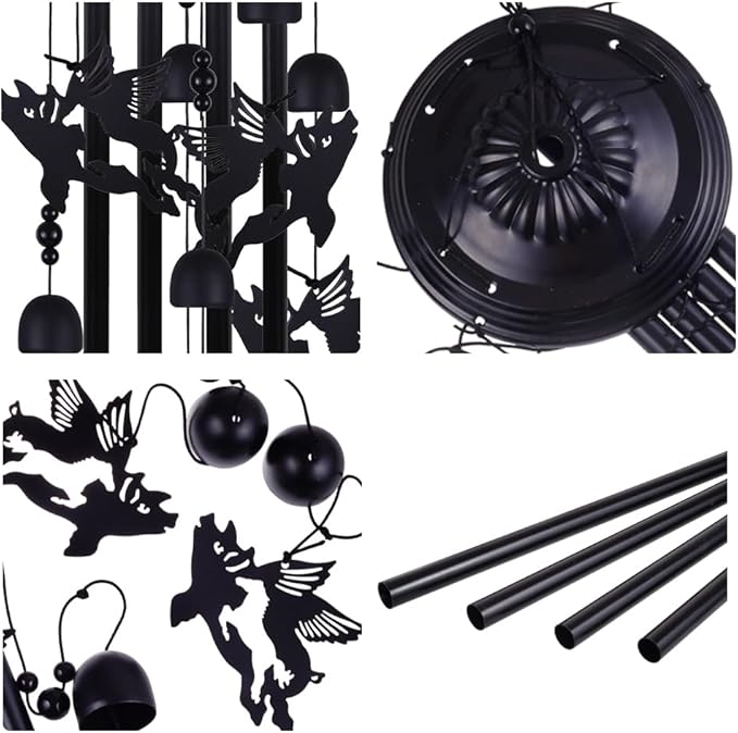 - Unique design: The length of the flying pigs wind chimes is about 34 to 36 inches. Each wind chime is decorated with 7 little fly pigs. There are 4 hollow aluminum tubes under the wooden support. When colliding, each aluminum tube has its own unique tone, and there are 6 bells around the aluminum tube. Make the sound of wind chimes more pleasing. It can emit beautiful and harmonious sounds, and bring clear and sweet ringtones anywhere.