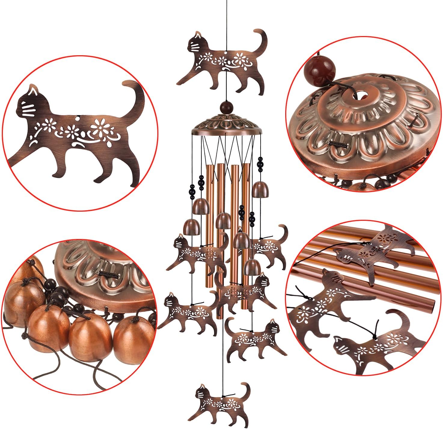 • WONDERFUL WIND MELODY : The resonance time of cat wind chimes made of aluminum are longer than others, bringing a lasting beauty of music. When the breeze blows the lovely wind chimes seems to be dancing, each metal aluminum tube and bell has its own unique tone when it collides. Create a harmonious experience in your home or garden. Can help you relieve stress, relaxing.