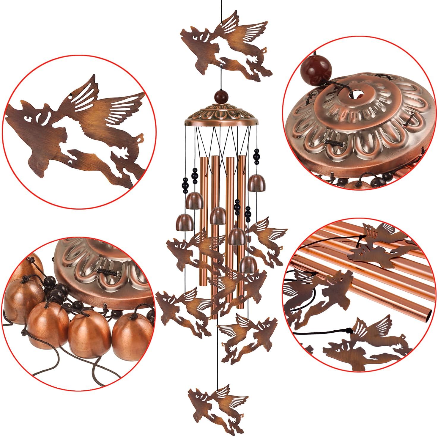 • WONDERFUL WIND MELODY : The resonance time of flying pigs wind chimes made of aluminum are longer than others, bringing a lasting beauty of music. When the breeze blows the lovely wind chimes seems to be dancing, each metal aluminum tube and bell has its own unique tone when it collides. Create a harmonious experience in your home or garden. Can help you relieve stress, relaxing.