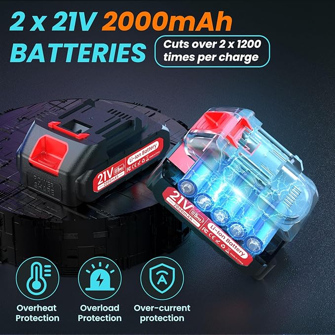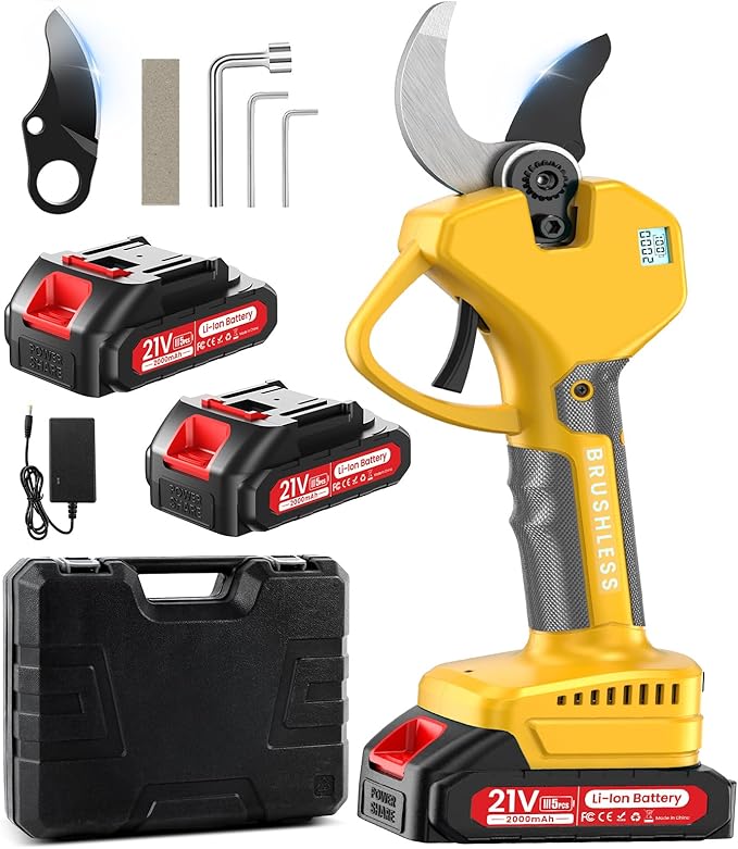 • ✅High-Performance Battery: This electric pruning shear includes two high-energy-density 2000mAh batteries, allowing for over 2,400 cuts (2 x 1200). It is designed to handle even high-intensity, continuous work with ease.