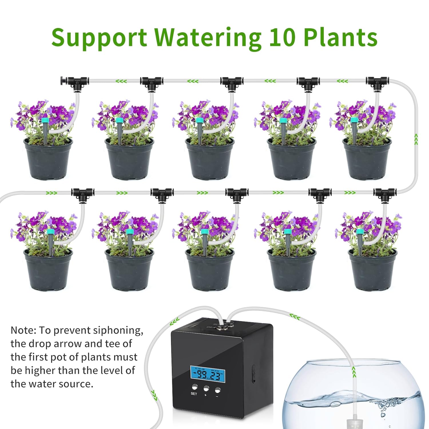 • 【Complete Kit + Bonus】 "Includes pump, timer, tubing, and 10 drippers. Order today and free up your watering time.