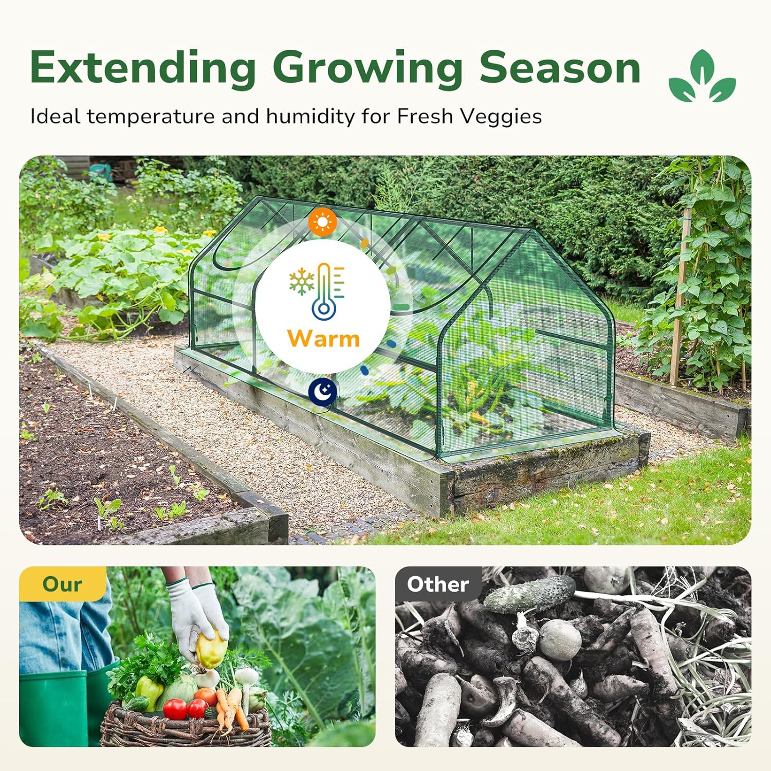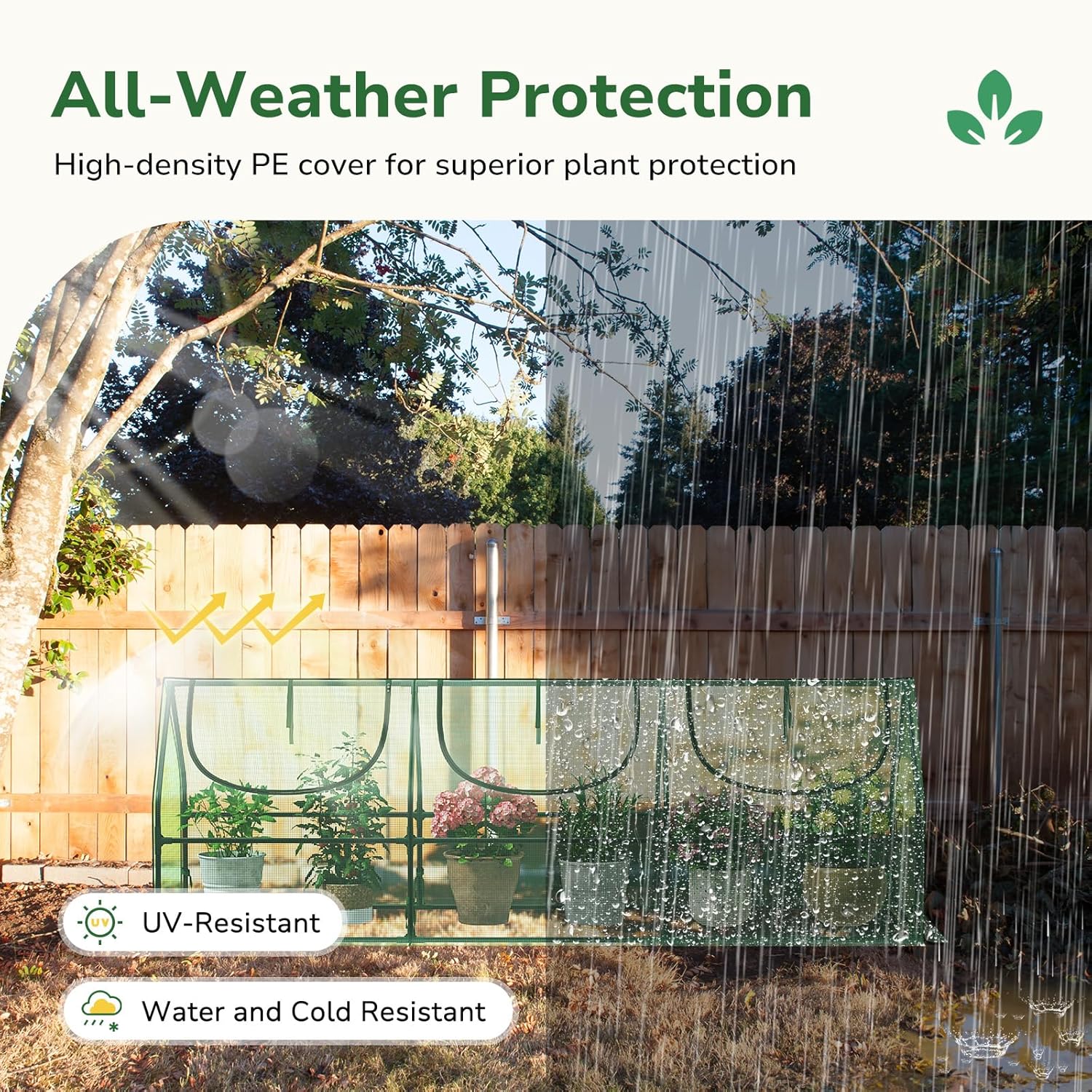 • 【Weather Resistant】 Made of high-density PE materials that are waterproof and UV-resistant, the small outdoor greenhouse protects plants from harsh weather conditions, extending the planting season, and bringing bountiful harvests and a beautiful green landscape.