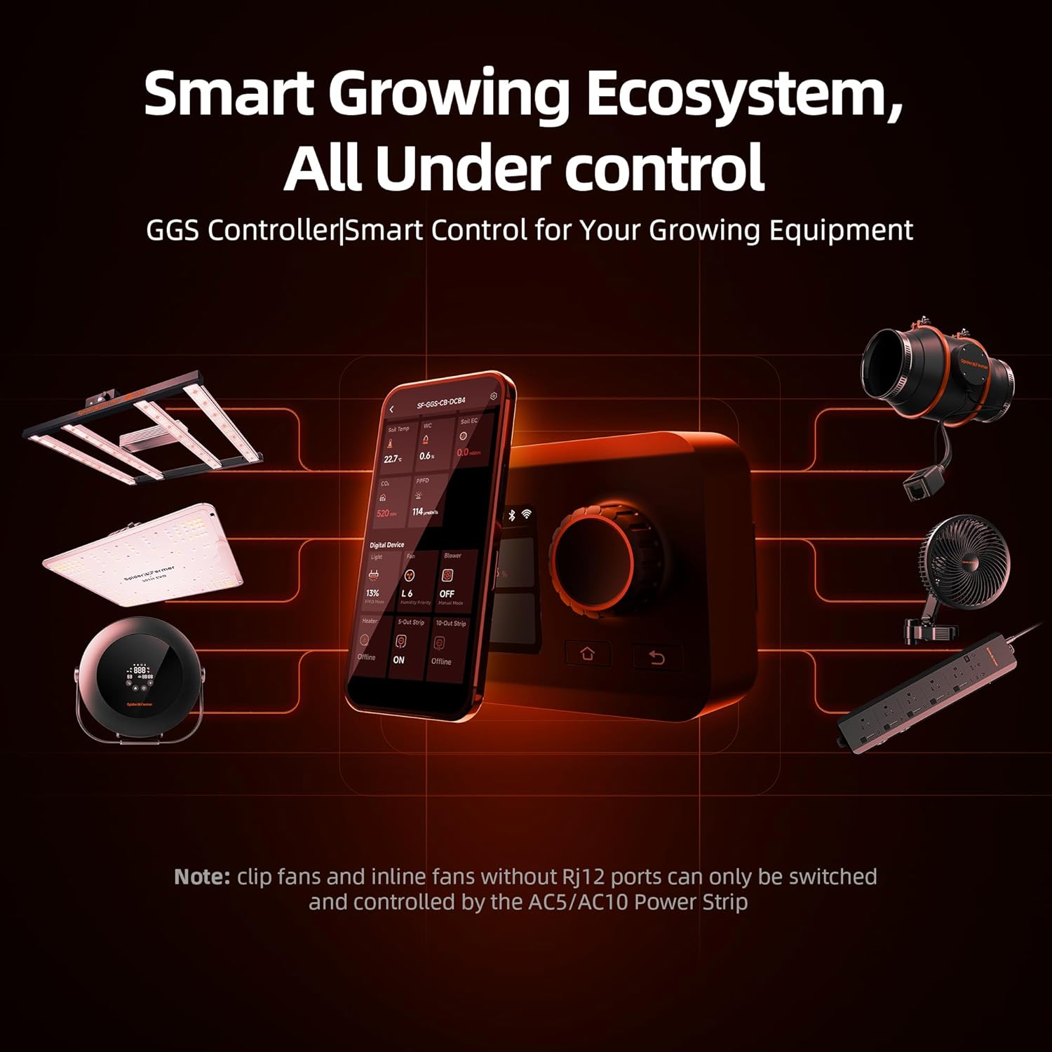 • Versatile Application: Suitable for grow tents, grow rooms, and standalone setups. Paired with AC5/AC10 smart power strips, all connected AC devices can be centrally managed, meeting diverse growing needs.