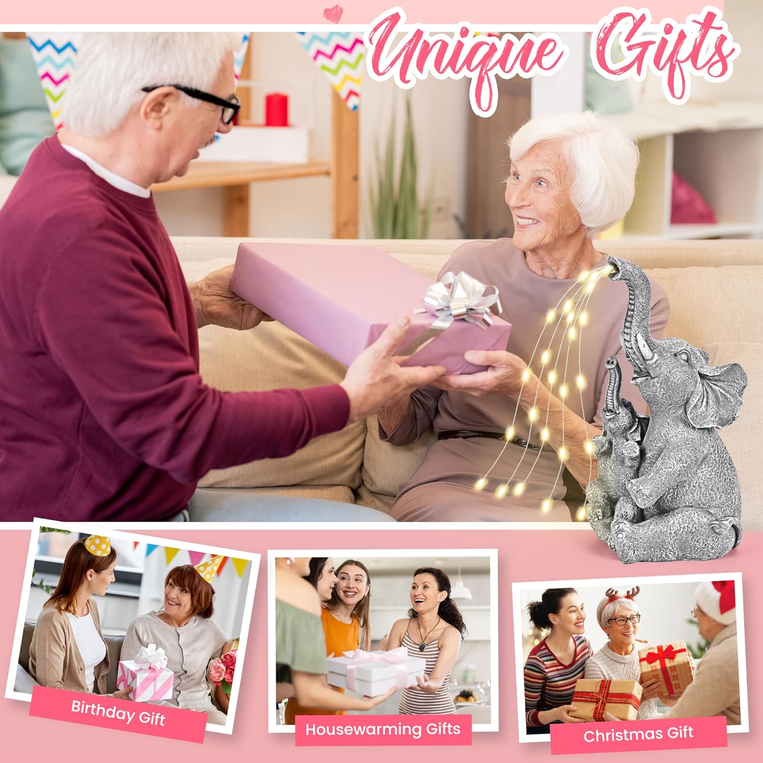 • Thoughtful Gifts: Crafted meticulously, this elephant statue makes an excellent Christmas gift for mom, grandma, women, family, or anyone who appreciates whimsical outdoor decor. Ideal gifts for Mother's Day, birthdays, housewarmings