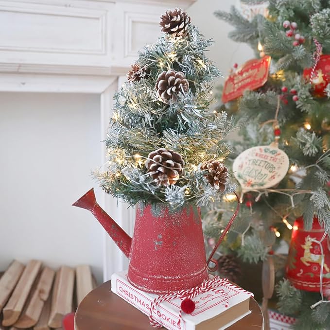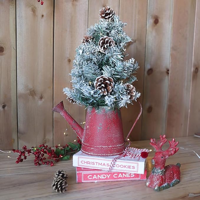 • COMPACT YARD DECOR - Measures11*5.5*6.5inch. Use this fun and vintage watering can indoors and outdoors for house plants, potted flowers, orchids, herbs, bonsai and more. It can also become a pure christmas decoration to liven up your living spaces
