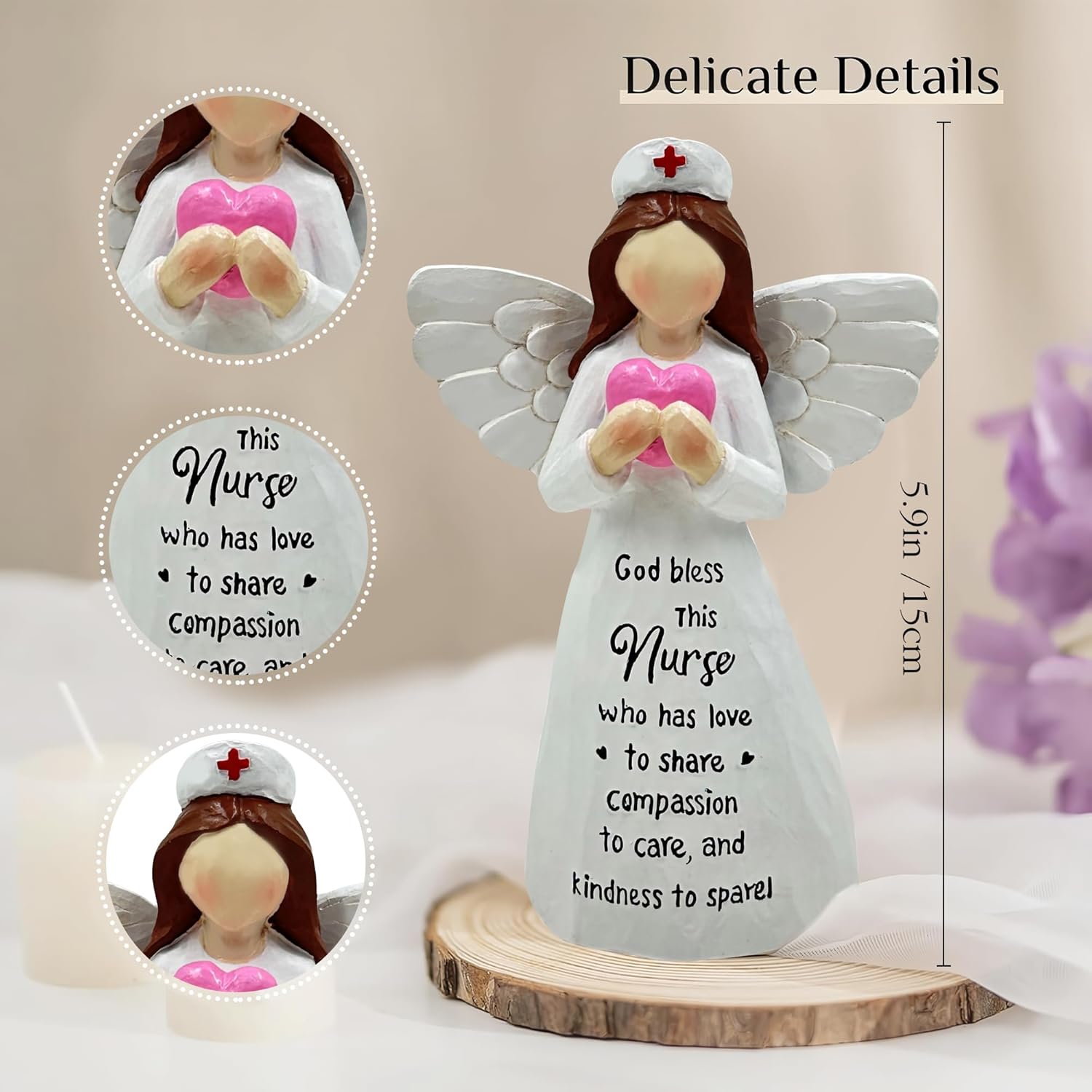 Nurse Gifts, Nurse Graduation Angle Figurine, Thoughtful Tabletop Decoration, Gifts for Women, Nurses, Female, Healthcare Workers, and Medical Graduates, Hand-Painted 5.9 Inches Resin Doll