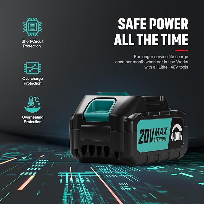 • โ—€ใ€With 2 x 20 Volt Rechargeable Batteriesใ€‘WEMARS Battery Powered Chainsaw by 2 pcs 20V 4000mAh rechargeable lithium battery, this chainsaw is not bound by the limitations of cords and ensures freedom from tangled wires. The Rechargeable lithium battery provides ample power to support precise and efficient cutting work, which can be used for a long time giving you peace of mind.