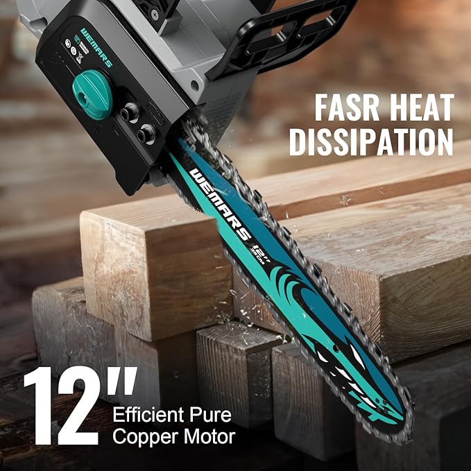 • โ—€ใ€Upgraded Brushless Motor Technologyใ€‘WEMARS Efficient Brushless Electric Chainsaw- Cordless is equipped with brushless motors, which can provide up to 30% more torque and 70% less vibration. Compared with traditional motors, brushless motors can extend the service life of tools. Compared with traditional motors, brushless motors can extend the service life of tools.