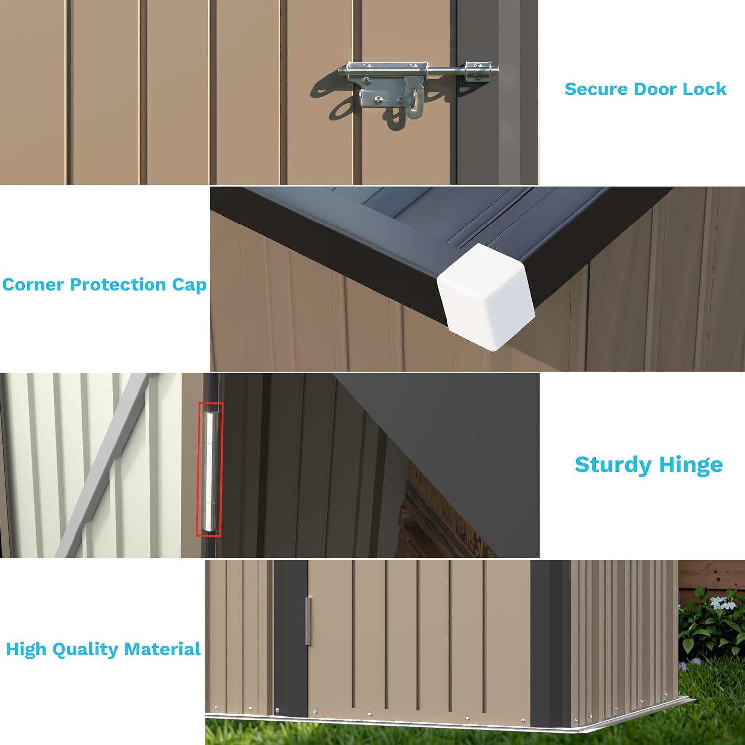 • Durable & Stable Storage Shed: Durable construction and thicker galvanized steel make this durable lifetime shed rust and UV resistant. The overlapping wall panels are water and moisture resistant for worry-free use in all weather conditions.