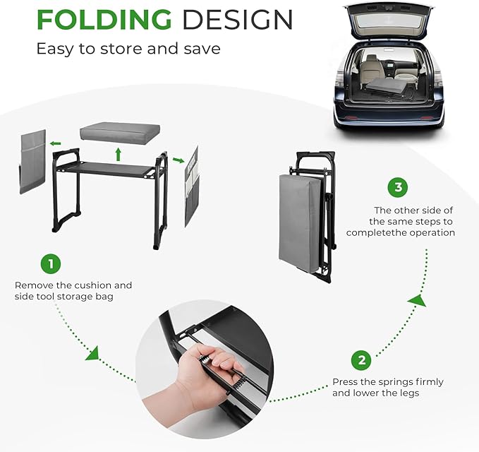 • 【Heavy Duty & Portable】Built with a high-strength steel frame, this heavy duty garden stool supports up to 350 lbs. Its foldable design makes it easy to store and transport.