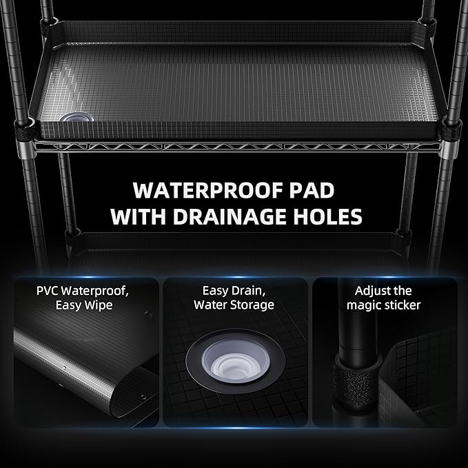 - ๐๐๐ญ๐๐ซ๐ฉ๐ซ๐จ๐จ๐ ๐๐๐ฌ๐ข๐ ๐ง ๐ฐ๐ข๐ญ๐ก ๐๐จ๐ง๐ฏ๐๐ง๐ข๐๐ง๐ญ ๐๐ซ๐๐ข๐ง๐๐ ๐: Each tier of the grow rack comes with a tray-style drainage mat featuring openable drainage holes. Made of waterproof PVC material thatโs easily clean and reusable. Effectively helps keep your grow area neat.