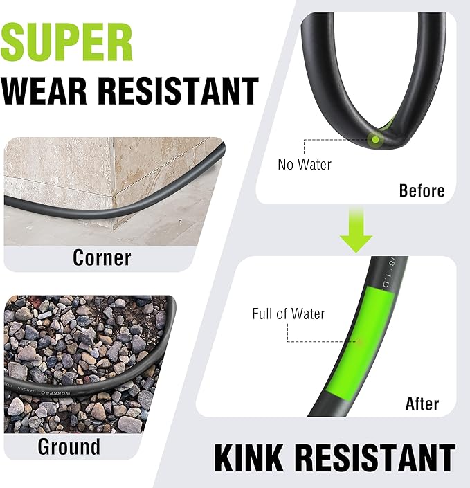 • High Flow and Wide Application: With a 5/8" inner diameter, this water hose provides strong water flow and can handle up to 500 PSI burst pressure and 150 PSI working pressure. Perfect for heavy-duty tasks like watering, car washing...